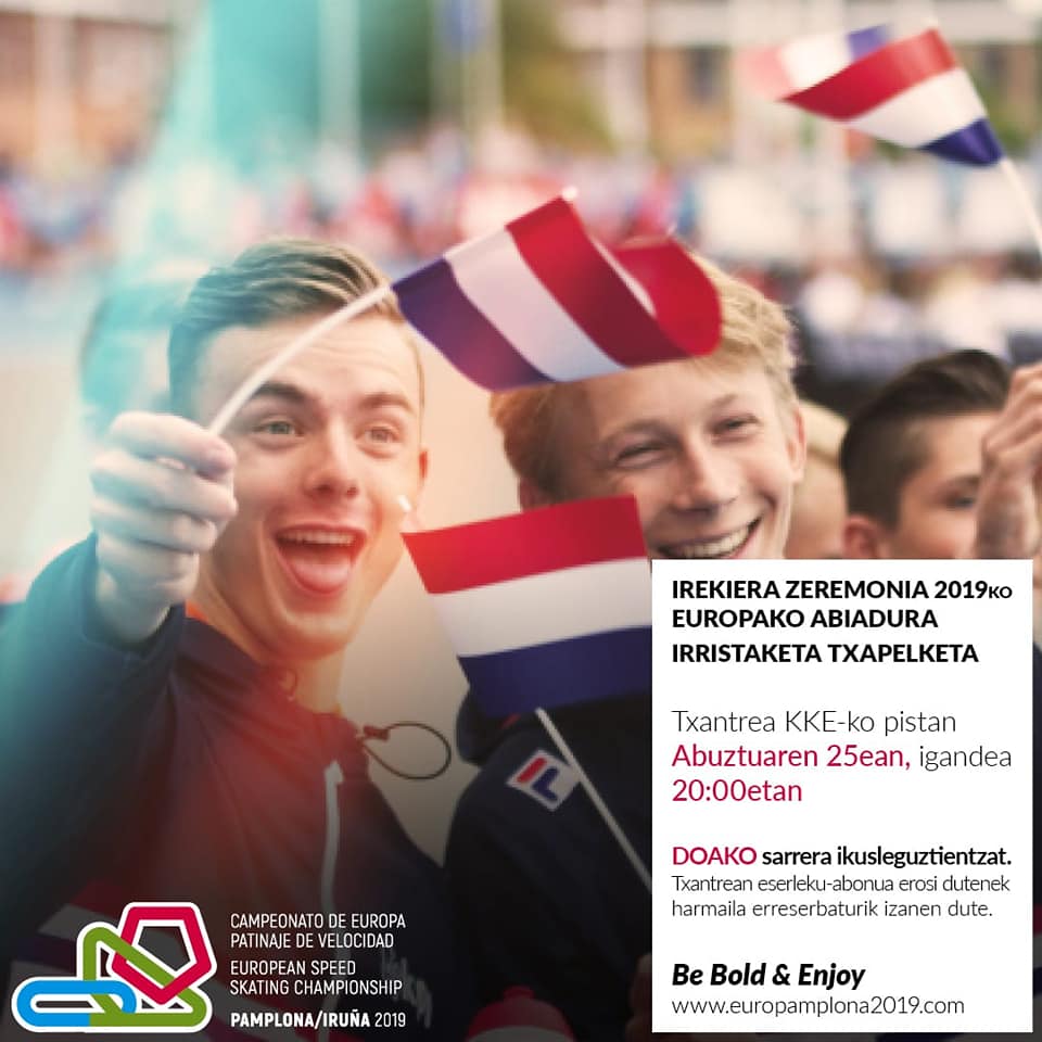 Este miércoles 28 de agosto, la Txantrea ha puesto punto y final a las pruebas de pista del Campeonato de Europa de patinaje de velocidad, que se celebra en Pamplona hasta el próximo domingo 1 de septiembre de 2019. Las pruebas de 1.000m sprint y 3.000m relevos, en todas la categorías, han hecho las delicias de un público que ha vuelto a abarrotar, por tercer día consecutivo, la pista de la Txantrea. Disparidad de medallas en la prueba de 1.000m sprint, mientras que en la de 3.000m relevos, especial mención a la delegació...